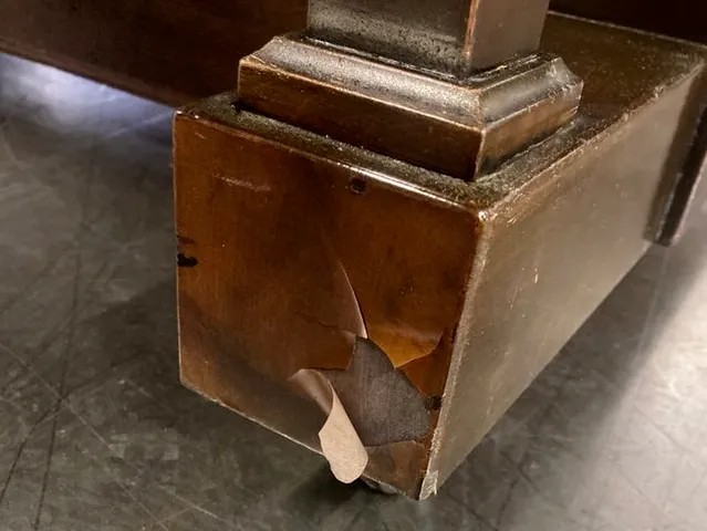 お使いのピアノの塗装タイプ(ラッカー、ウレタン、ポリエステル、カシューなど)に合わせて、それぞれに最適な塗料と技法で修理します。元の色に合わせた調色を行い、下塗り・中塗り、必要に応じて木目描きを施します。